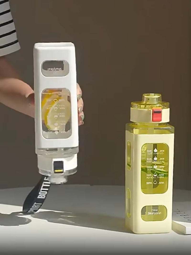 700ml/900ml portable sports water bottle with white protective case and flip-top lid for outdoor activities